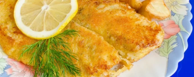 तस्बिर: खुला स्रोतबाट तरकारी सलाद संग सेवा गर्नुहोस् ब्रेडेड माछा रसदार र कोमल बाहिर जान्छ, र क्रिस्पी फ्राइड आलु र पनीर क्रस्ट उत्कृष्ट साइड डिशको रूपमा कार्य गर्दछ।.
